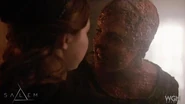 Meanwhile, Reverend Lewis finds Dollie Trask and brings her home with him to discover Mercy in the house. Shocked, Dollie begins to cry and tells Mercy that she's so sorry for what had happened in which Mercy relentlessly asks her where she was when she and her coven were burned alive. Dollie replies by telling Mercy that she was in the woods to lure men to do Mercy's bidding. Mercy then dismisses the situation and moves onto Mary Sibley, and how she plans to use her and her father to deliver the first deathblow to Mary and Tituba.