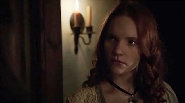Elsewhere Mary has returned home with Mercy and instructs her in how to project herself without actually leaving her body. She informs her she must terrify Mrs. Trask and have her accuse Mrs. Barker of being a witch and she appears in the Trask family home while a clueless Mrs. Trask does her stitching. She deliberately knocks over a jug and Mrs. Trask angrily shouts out to her daughter and threatens to skin her cat believing the animal had knocked over the jug. Mercy is angered by her threats possesses her body and slits open her throat with a pair of scissors. While despite having discovered the location of the Malum, Mary continues to invade John's dreams and finds herself in the Alden house. John tries to convince himself it is only a dream while Mary begins to unbutton his shirt but they are interrupted by the presence of Anne who proceeds to kiss him before Mary finds herself in the woods as militia solider's flee from an unknown hunter. A terrified Mary runs away but is shocked to discover John dressed and painted like the Indians that had captured him, revealing he became one of them but her body back at the House of the Seven Gables begins fitting and a terrified Tituba desperately tries bringing her back. Mary quickly awakens and is comforted by her loyal servant revealing she only wanted to be with John but lost control. Tituba leaves so she can once again regain her control taking the young Mercy with her to retrieve the Malum.