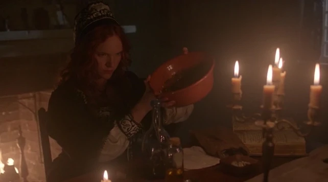 Tituba applying the ointment on Mary's lips in preparation to Dream Walking