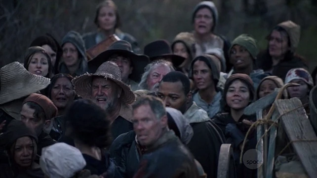 A mass of refugees accumulates at the borders of Salem, asking to be accepted as the Indigenous peoples and the French settlers have burned and looted their homes. Initially, Magistrate Wendell Hathorne is not well prepared to receive them, even when a woman stands as a spokesperson for the needs of refugees, and let the militiamen threaten the unfortunate with shots as warnings to leave. To put in a good word with the magistrate is Isaac Walton, who relies on the great pride of Hathorne, saying that to be a great man, one is required to have a large following. Totally duped by Isaac's words, Hathorne allows the unfortunate ones to find refuge among the boundaries of Salem. (After the Fall)