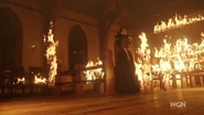 The final battle is yet that played between Mary Sibley and Countess Von Marburg, who have an altercation the day after having given corporeal form to the Devil. Mary Sibley said that the church was built with woods of Salem, her woods as Samhain of the Essex Hive, and set fire to the church in order to bring down her enemy. Benches torn, destroyed walls and a fight without rules took place until Anne Hale appeared to extinguish the fire by calling the rain with her own tears. The fight could well have been concluded, but the church is now burnt, an omen of future events which will shake Salem. (The Witching Hour)
