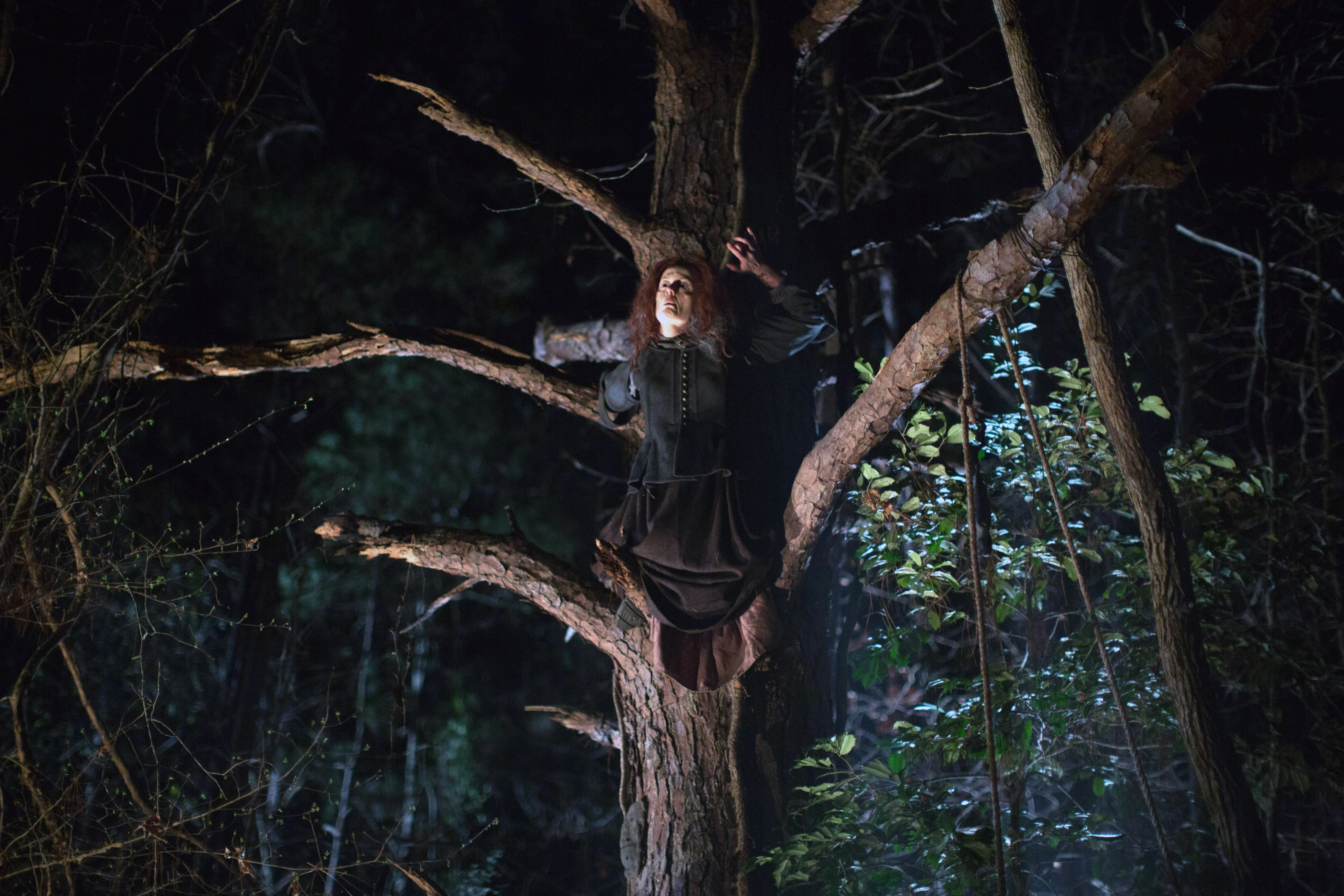 Paralysed and injured, Rose was bound by peculiar knots, suspended by a tree and exposed directly to Saturn's influence. The witch used her skills and knowledge to shock the two men with dirty talk about their women – Gloriana and Mary – and by playing on both of their guilt for failing them. However, she was soon compelled by the planetary alignment and revealed the death that accompanies and will follow the Grand Rite. Rose responded to Mather with some riddles about the sacrifices already in place although the reverend was not aware of any disappearances or suspicious deaths. As the influence wore off, Rose was able to free herself from the ropes and crawling up the trunk. Once she was at the top of the tree, she slashed her wrists and moistened the ground with her witch blood, uttering magical words. Revenants thus began to emerge from the ground, attacking the two men and allowing the witch to escape.[1]
