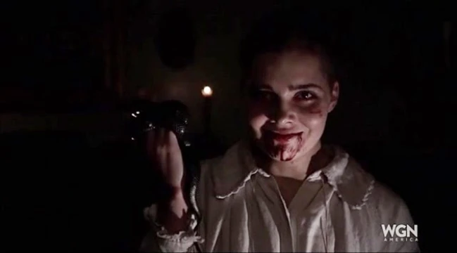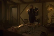 The episode begins with Reverend Lewis as he performs a Catholic exorcism on his daughter Mercy Lewis. Holding a cross and a bible he chants in Latin while Mercy pleads with her father to stop in fear of what the Puritan's will do to him if they discover what he has done but her father tells her he is not afraid of the Puritan's and is adamant he will free her from the witches' grasp. He asks if she trust him and she tells him yes before he pulls out a knife, his intention unknown. A frightened Mercy begs her father to stop but he continues to cut her belly until the witches snake familiar slithers out from within her and fleeing the room leaving Mercy finally free from Mary's control.
