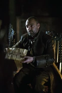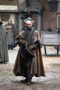 Elsewhere the Magistrate meets the captain in the tavern and informs him a reception in John's honor has been arranged to celebrate him joining the selectmen board. The captain does not seem enthusiastic about the idea but soon leaves when he notices the man he had previously stopped Cotton from attacking earlier that day. Following the man outside, he corners him where it is revealed that the captain knows the man as William Hooke. John demands that he leave Salem but Hooke tries to threaten him into arranging a meeting between himself and Mary so he can obtain a package onboard the ship under quarantine unless he wants him to reveal his past to the residents of Salem but the captain warns him too stay away from her and too quickly finish his business in Salem and leave.