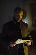 That night following John's visit from Tituba Hooke obtains the parcel that he had been tasked with acquiring and is stumbled upon by the captain. Hooke reveals that the captain had committed murder and treason but had spared his life under one condition— that he never laid eyes on him again. The captain continues to straggle the man to death and disposes his body among the victims of the influenza outbreak before he takes the package a strange and mysterious box. While at the Magistrates home he confronts his daughter over her obvious attraction to the captain and forbade's her from having any more contact with him as he believes he will only bring her heartache as he is still in love with Mary Sibley.