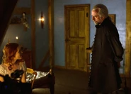 Later John approaches Cotton Mather at the Tavern on the subject of miss Hale being under a witches spell as he believes that might of been the cause of her mysterious illness but Cotton seems to be skeptical of the idea and even more so of John's suspicion that her father is a witch but his attentions are diverted when he sees Gloriana Embry in the arms of another man and quickly loses his temper causing him to attack her admirer but he is stopped by John who pulls the reverend away before the stranger excuses himself and leaves.