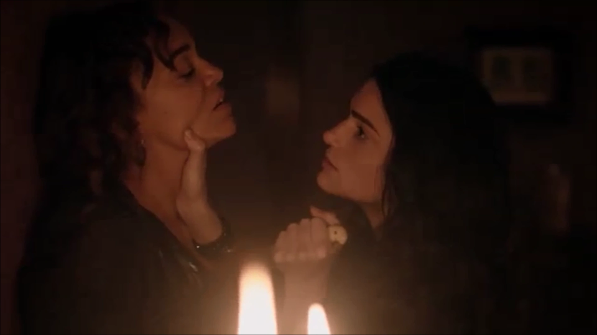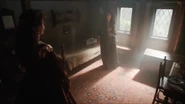 Later that night, Mary summons Tituba to her bedroom and informs her that the Countess has stolen her son and is preparing him for his sacrifice something that she had kept from her. Clearly fearing the repercussions of her action's she tries to leave but Mary telekinetically closes the door and questions her in why she deceived her for all these years. Mary is shocked when she reveals that she did it because she knew she would never have gone through with any of it if she knew the truth. As the pair confront each other Tituba reminds her that they sold the boy to the devil himself like she had been sold as a slave time again, that all the world would be hers if only she would harden her heart but Mary tells her she never wanted the world only a real heart and all the love that went with it. Tituba questions if she found any love when she was having sex with Samuel Wainwright as the Countess stole her son causing Mary to strike Tituba, who in turn throws hot coals at her mistress before trying to flee but Mary appears in front of her and holds her against the wall before she telekinetically summons a knife and presses it against her chest fully prepared to kill her. While Tituba tells her to do it she also states that only if she spares her life would any of the love that she has lost be returned to her, a confused Mary asks how and is shocked when Tituba reveals that John Alden is alive.