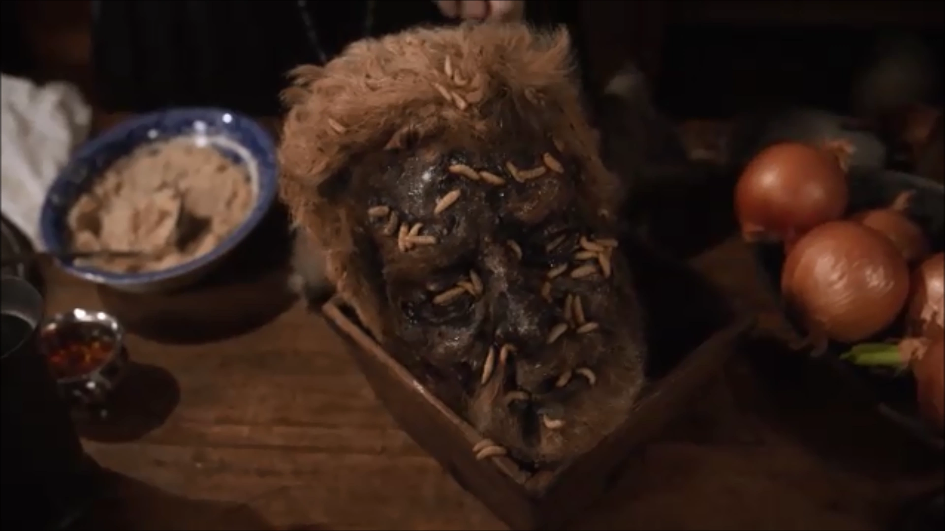In the morning Mary is preparing her son's breakfast when Tituba arrives and asks if she should take it to him but Mary tells her no that she has another task more suited to her skills- revealing the maggoty head of Increase Mather. Tituba is shocked and chastises her for attempting necromancy without her as it is dangerous but Mary disregards her uses clearly upsetting Tituba and tasks her with disposing of the evidence. Mary soon goes to her son's room and finds his bed empty and is clearly worried but is greeted by the Countess Marburg who enquires if she has lost something. Mary demands to know what she has done with her son and is soon devested to learn the truth about her son, he must be sacrificed to complete the grand rite and become the vessel for the devil something that was kept from her from the Essex witches. The countess is surprised that she didn't know this and tries to console her stating it was something she had planned for her own son many years ago but it wasn't meant to be. A heartbroken Mary tells her that she won't do it causing the Countess to threaten that unless she meets her in the crag to baptize her son in hell blood to complete the grand rite she will kill him, Mary lunges at the countess but she disappears leaving Mary alone in the room weeping.